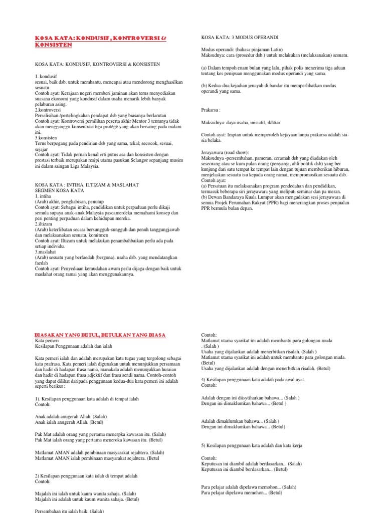 Wadah Keterampilan Berbahasa Kosa Kata 3 Modus Operandi